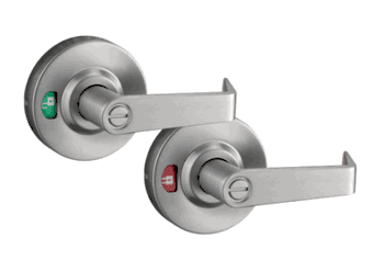 The cylindrical privacy lock indicator visually displays door status; whether the door...