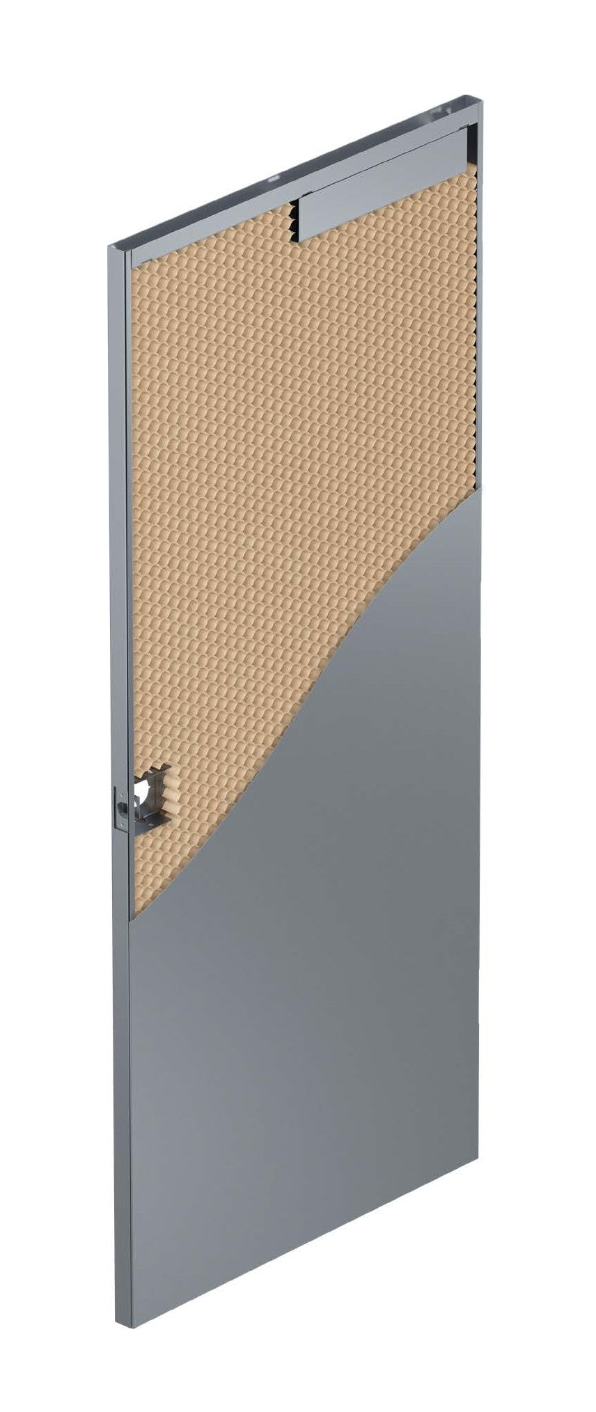 C: 10 Gauge high frequency dual purpose hinge reinforcement w/ return bend for added strength and rigidity. Field convertible to accommodate heavy weight hinges.