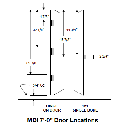 | Hinge Prep: | (3) 4 1/2" hinge prep @ MDI Standard Locations (5/10/Equal)... ...See downloads tab for more details on our hinge & lock locations. |